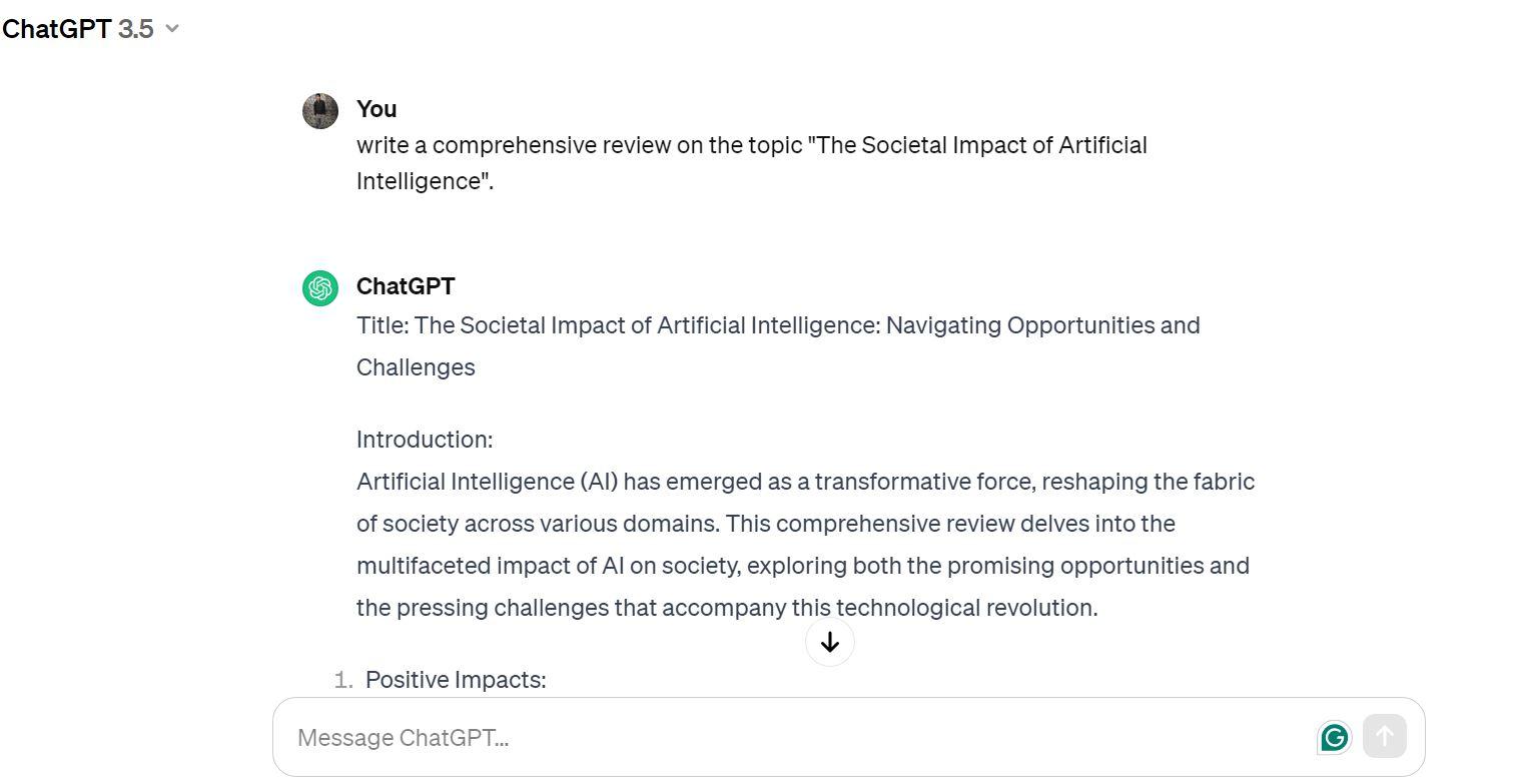 Using ChatGPT, our preferred AI tool, I first produced academic content. One of my assignment topics, which I’ve used as an example, is The Societal Impact of Artificial Intelligence.
