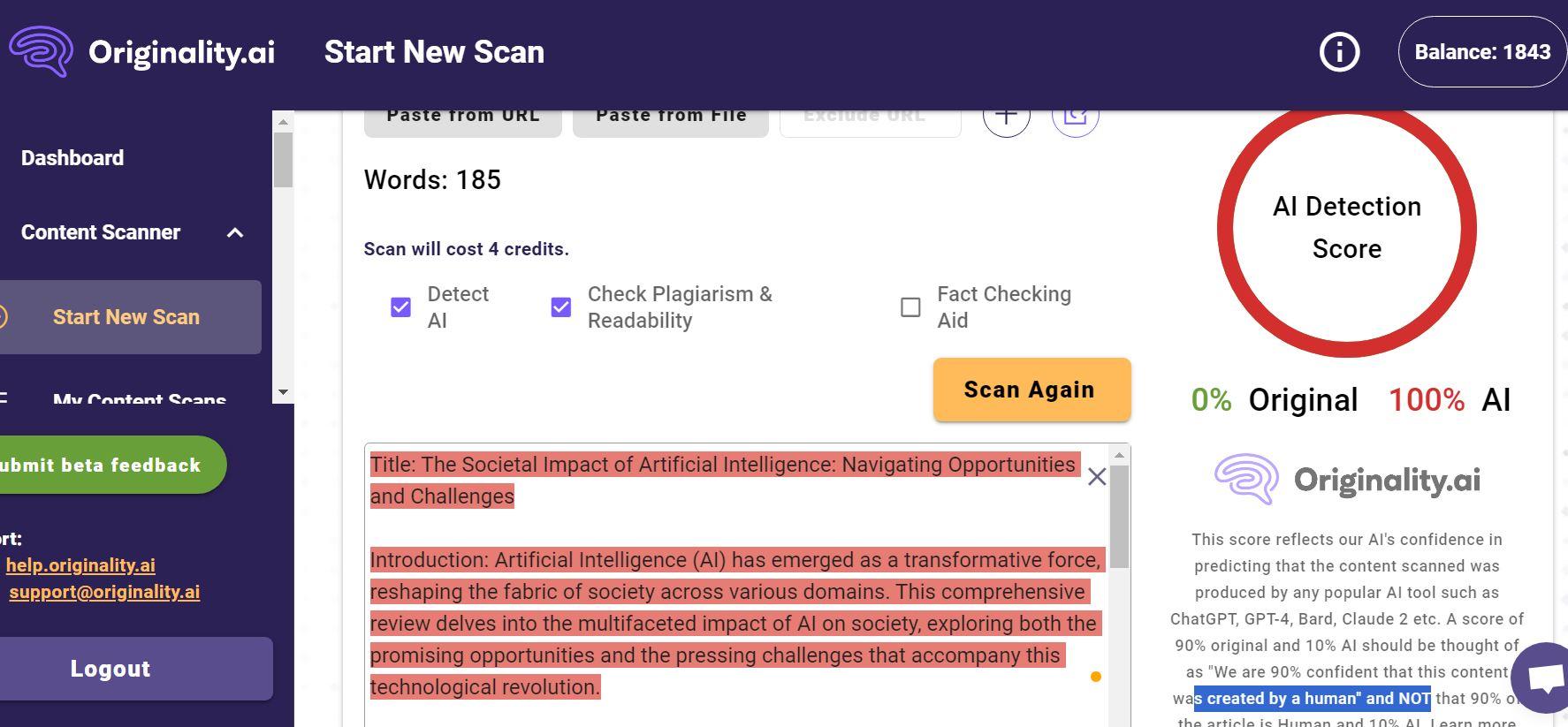 I have now looked at this AI-generated content using Originality.ai, one of the best resources for AI content detection. Naturally, it marked our content for 100% AI identification.