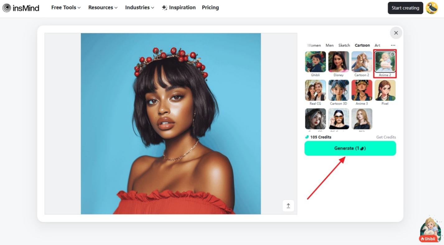 As insMind has many AI p1hoto editing tools to offer, Anime PFP Maker has become quite popular with the growing popularity of Avatars. It offers you all kinds of anime styles under the Cartoon category as Ghibli, Anime 2, and Anime 3, along with other cartoon styles like Real CG, DC-Comics, etc. With its reupload feature, you can change the picture in real-time without starting over the whole process.