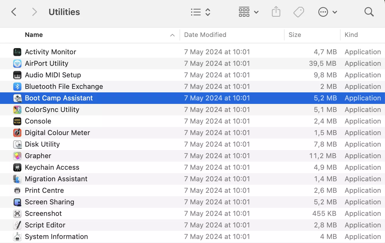 Step 1: Head to Applications, find Utilities, and double-click to open Boot Camp Assistant.