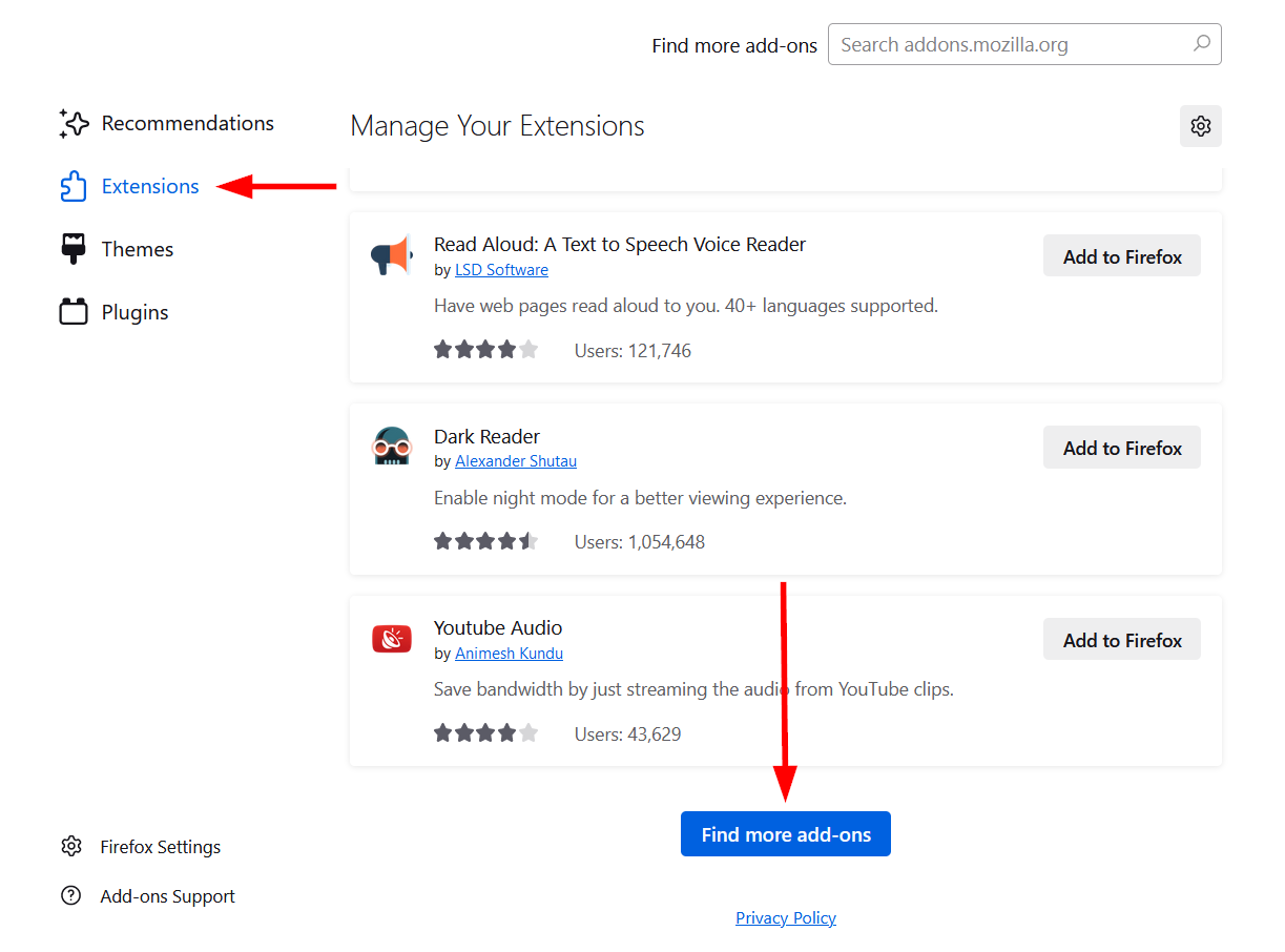 4. In the Add-ons Manager tab, click on the “Extensions” section on the left sidebar.