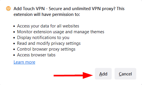 6. A confirmation dialog will appear. Click “Add Extension” to proceed.