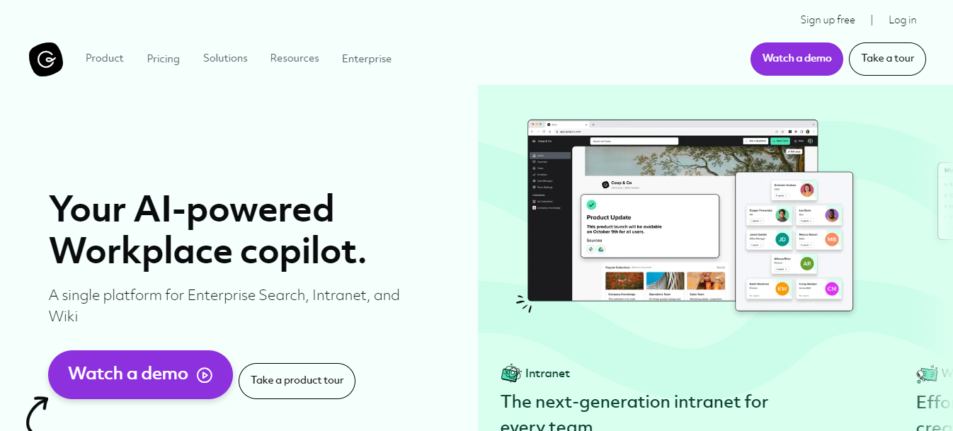 If you’re looking for an all-in-one solution for trusted information, GetGuru got you covered. This knowledge management platform combines secure enterprise search, an intranet, and a wiki, offering AI-driven answers through its enterprise search feature, ensuring employees can instantly access information from existing sources. Also, it integrates with various tools, allowing employees to stay in their workflows and find answers quickly.