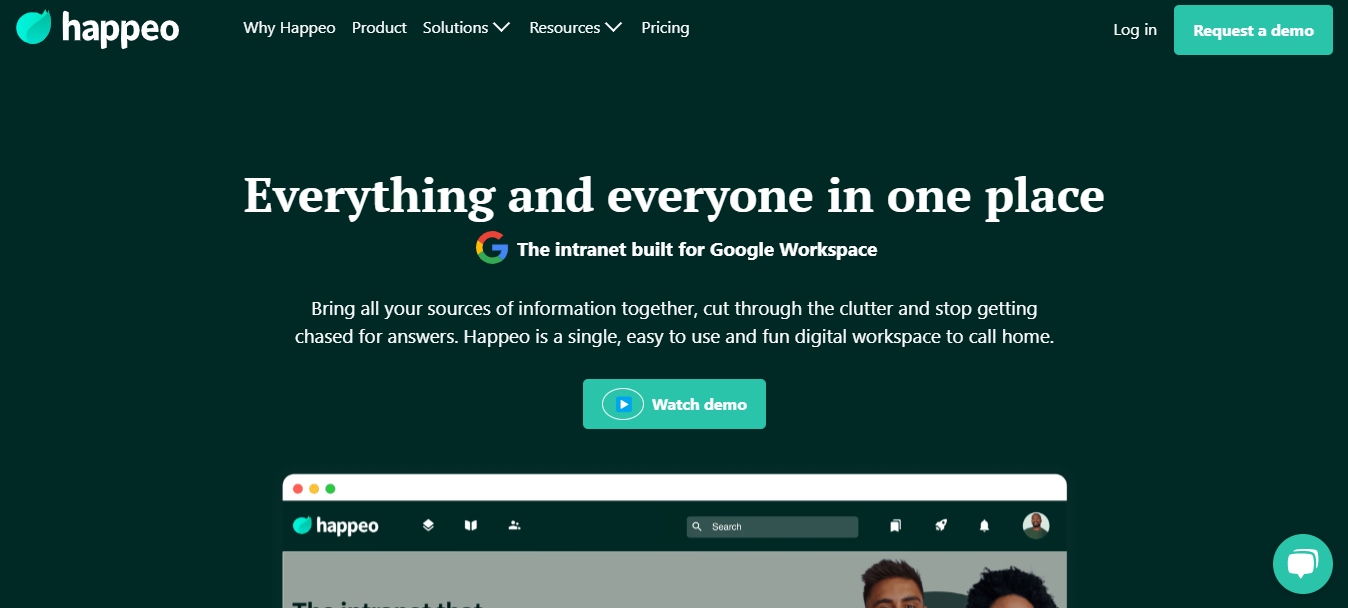 Our final recommendation is Happeo. This is a Google-based intranet that helps market leaders manage knowledge and internal communications in one unified place. It give you access to efficient template-based page builder, integrations, and universal search across all company tools. With Happeo, you can bring all sources of information together, cutting through clutter and providing a single, easy-to-use digital workspace. Besides, it is rusted by over 400 market leaders, helping to improve productivity, provide faster access to information, etc.