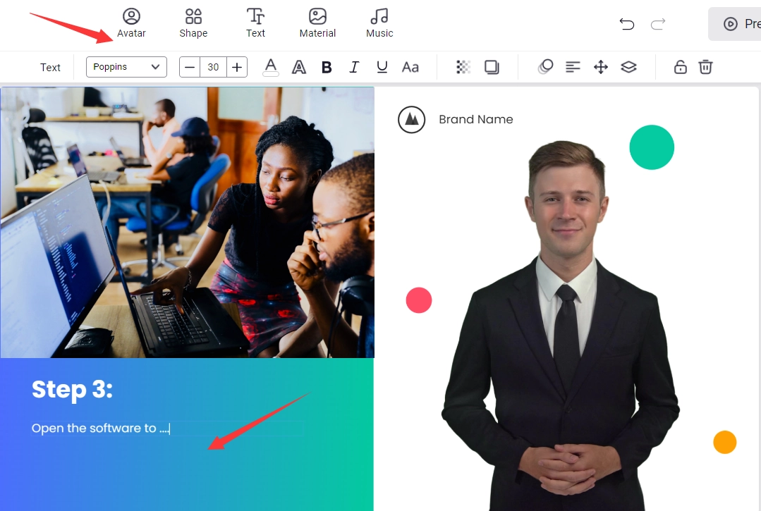 - Step 3 – With the help of video, text, and audio editing tools, replace the items on the templates according to your plan.