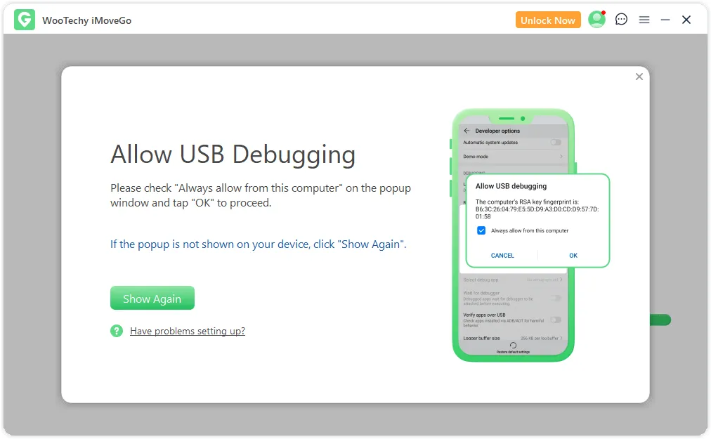 Step 2: If you’re an iPhone user, skip to the step 4 directly. If you’re an Android user, follow the on-screen guide to enable USB debugging.
