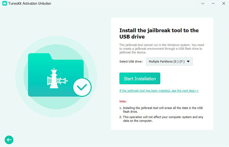 Launch TunesKit Activation Unlocker on your computer after downloading the software, and then connect your iPhone to it via the lightning-to-USB cord. If you’re ready to begin, choose the appropriate option.