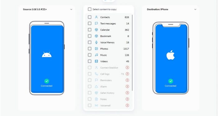 4. Now select what type of data you wish to transfer. You can select multiple options at once.