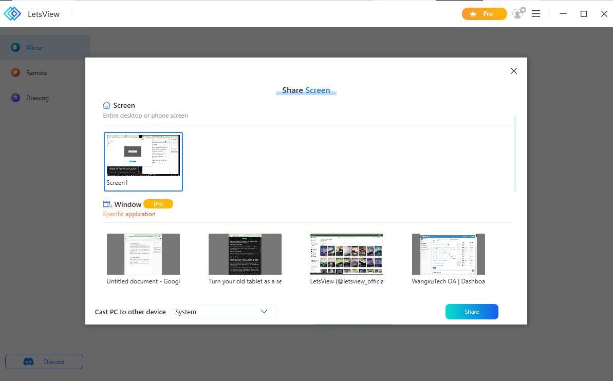 Then, choose the screen that you want to extend on your old tablet. After that, you may hit the “Share” button to start the screen extension process.