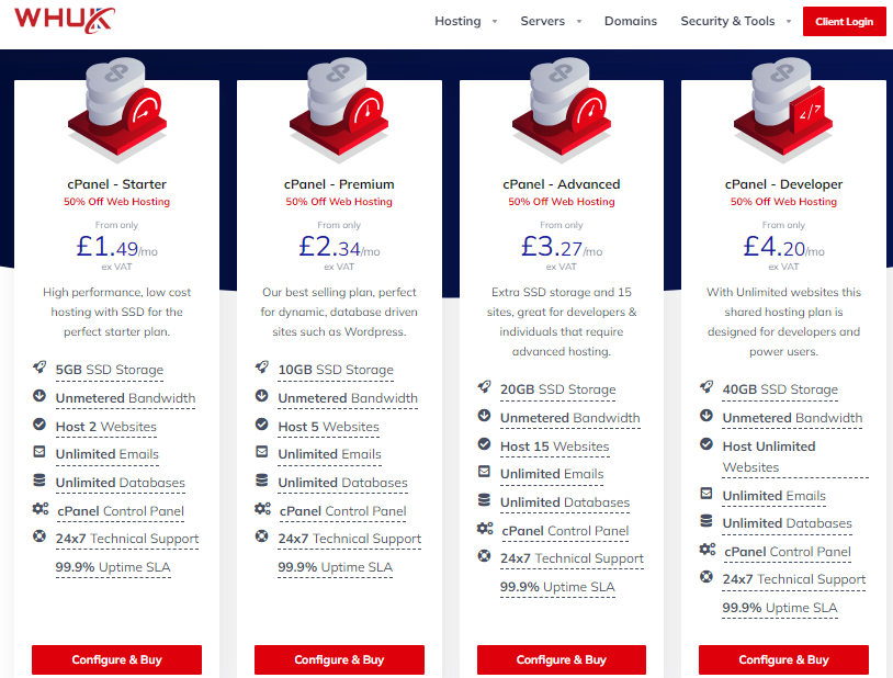 WebHosting UK is an affordable and reliable hosting provider. They offer a wide range of plans and packages. You can compare the benefits of each plan, check the ratings, and depending on that select the perfect plan for your business.