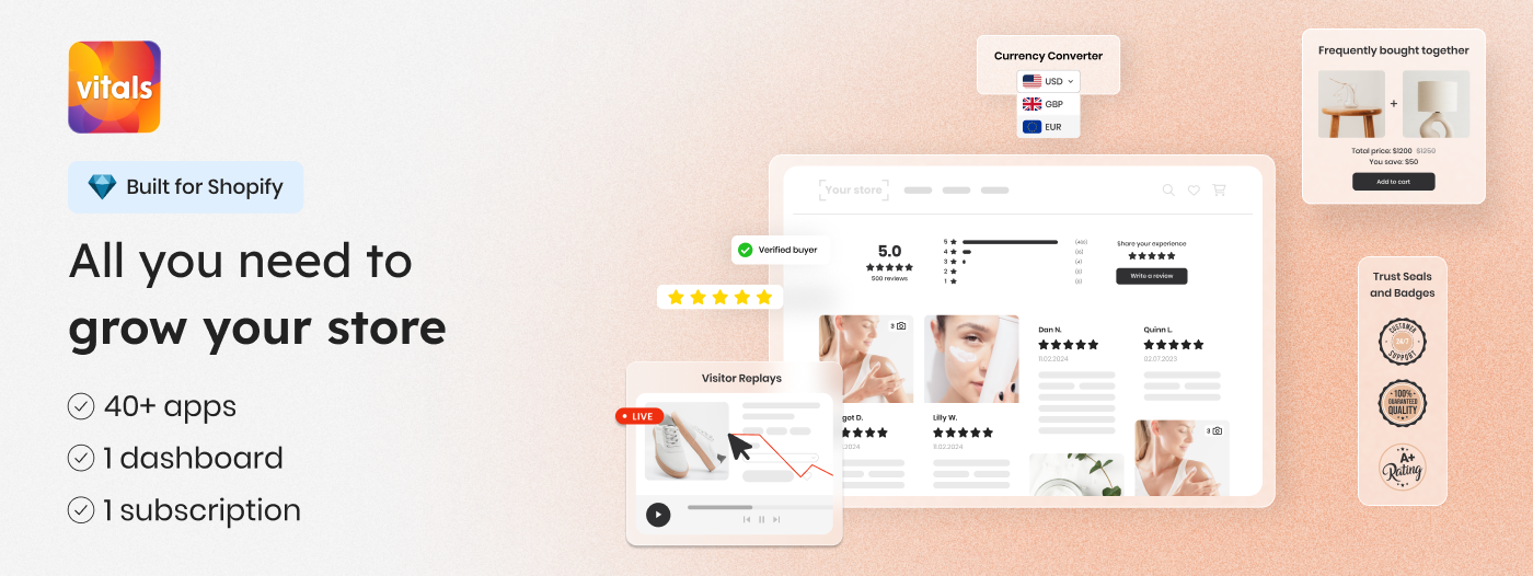 What it is: Vitals replaces 40+ Shopify apps with one unified platform, streamlining functionality for faster, better-performing online stores.
