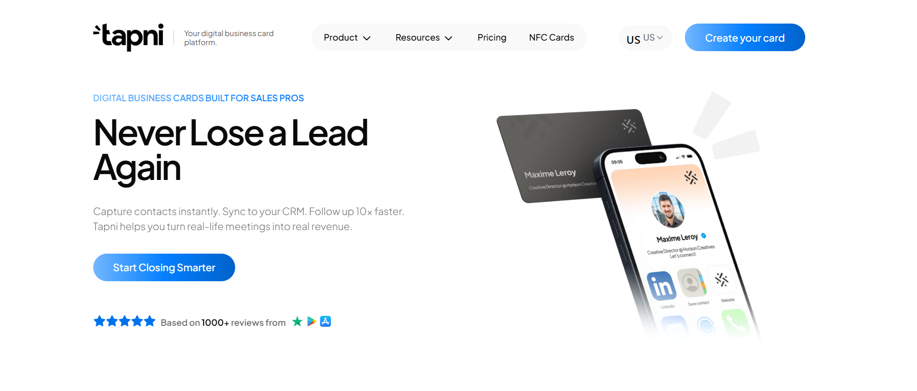 Tapni revolutionizes networking with customizable digital business cards that work through NFC and QR code technology—no app required.