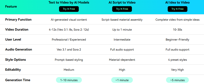 With these challenges in mind, Wondershare Filmora V15 offers an all-in-one, AI-powered solution that brings short-form creation closer to AI. Depending on how much you’ve prepared and how long a short you want to make, Filmora provides three AI-driven paths from text to video, all of which generate a strong first draft that remains highly customizable once inside the editor. Alongside these generation paths, Filmora provides publish-ready enhancements to complete the workflow.